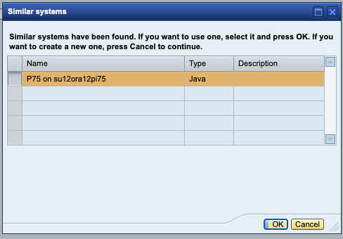 You may see a pop up window saying similar systems have been found. If you are happy to use your existing configuration click OK otherwise click Cancel
