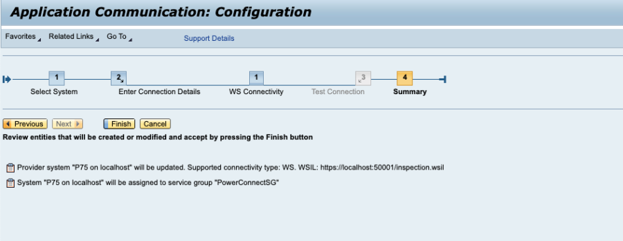 The final screen should show that the PowerConnectSG service group has been assigned to the newly created connection. Click Finish