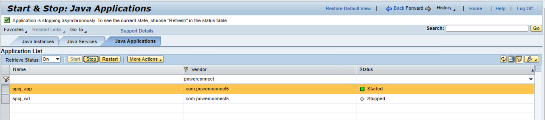 Modifying the data extraction interval for Java extractors requires a restart of the PowerConnect Java application. To do this, go to Netweaver Administrator (http://<serverhost>:<port>/nwa), and go to Operations → Systems → Start & Stop