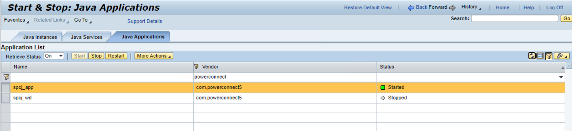 To do this, log into the PowerConnect Java administrative console using the following URL: http://<serverhost>:<port>/webdynpro/resources/com.powerconnect5/spcj_wd/SapPowerConnectJava#