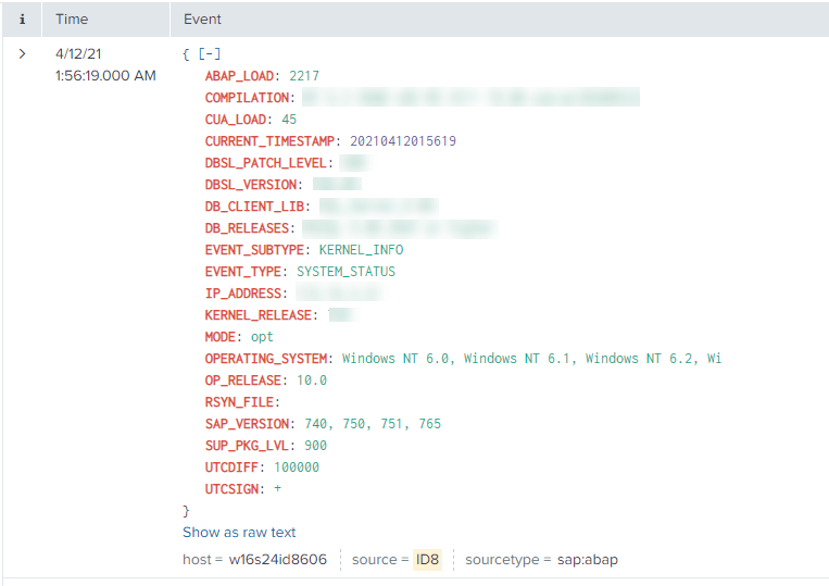 SYSTEM_STATUS with EVENT_SUBTYPE=KERNEL_INFO