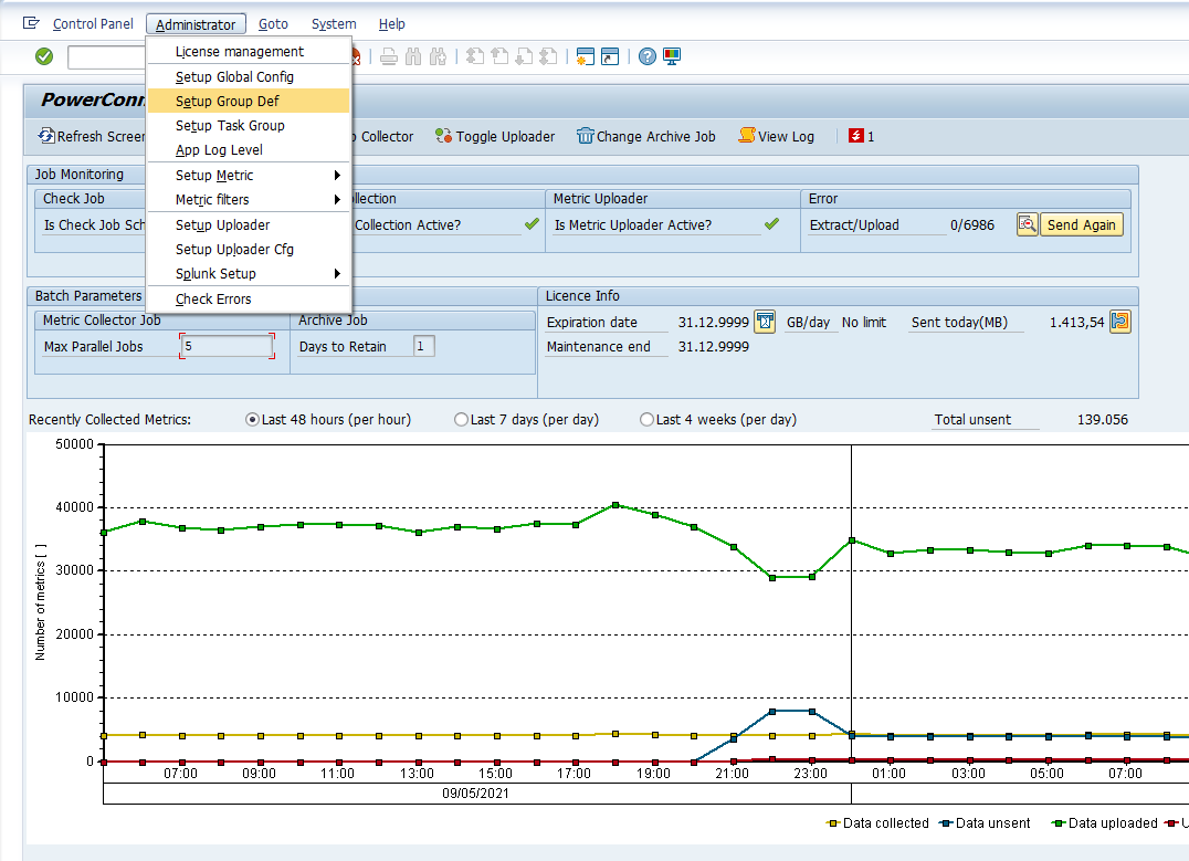 If there are metric errors in the PowerConnect Administrative Console they will be visible by logging into the managed system and executing the /n/bnwvs/main transaction. If there are metric errors, there will be statistics visible in the following section of the administrative console.
