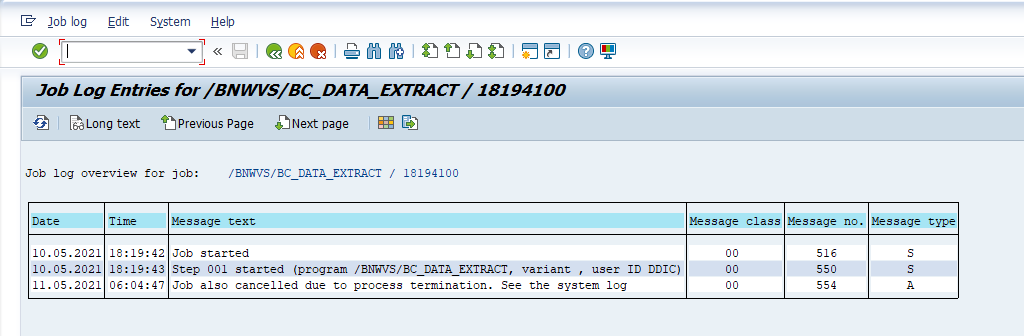 In some instances you will see if the batch job failed because of a ST22 dump or because of another cause. If the job log references an ST22 dump please see the “PowerConnect ABAP Dumps” section mentioned above. If you see something similar to the screenshot below which references the system log, please continue onwards. Please take a screenshot for future reference.