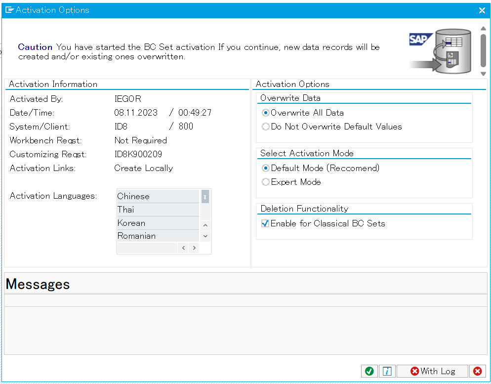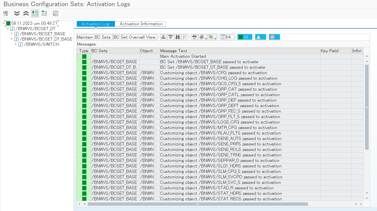 If BC Set was not imported successfully, beside the logs, you will get a notice when starting the PowerConnect for SAP Solutions application using transaction “/BNWVS/MAIN”.