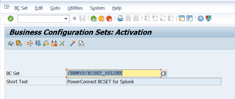 Activate Business Configuration Set for Splunk (PowerConnect ABAP 8.X)