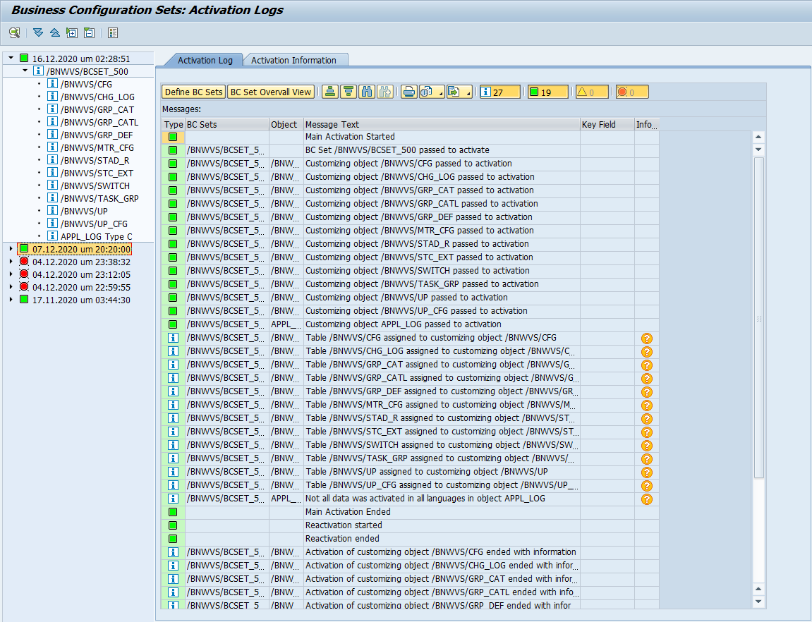 If BC Set was not imported successfully, beside the logs, you will get a notice when starting the PowerConnect for Splunk application using transaction “/BNWVS/MAIN”.
