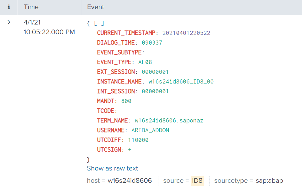 Log into SAP, and execute the AL08 transaction code. The data that is sent to Splunk will then be visible.