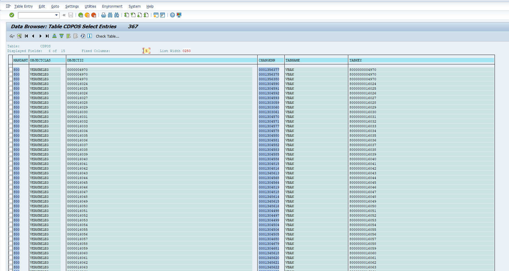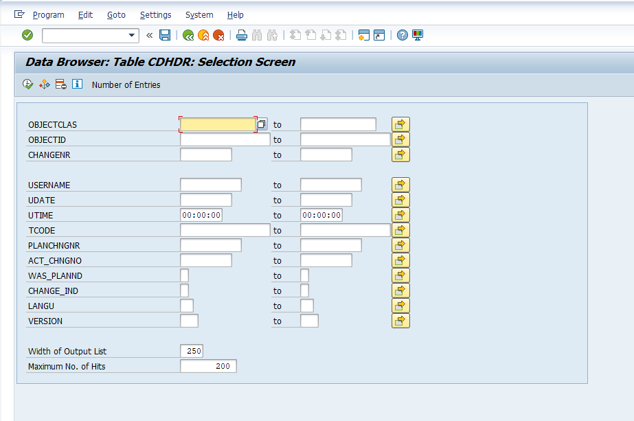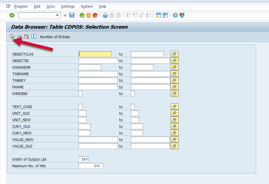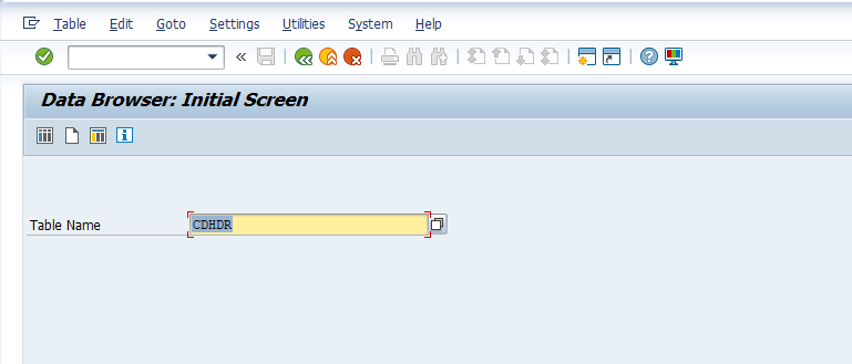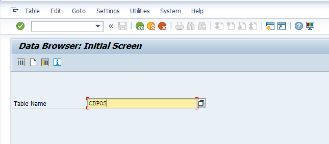 Log into the managed system, and execute the SE16 transaction code. Then enter CDPOS in the Table Name field, and hit the Enter key.