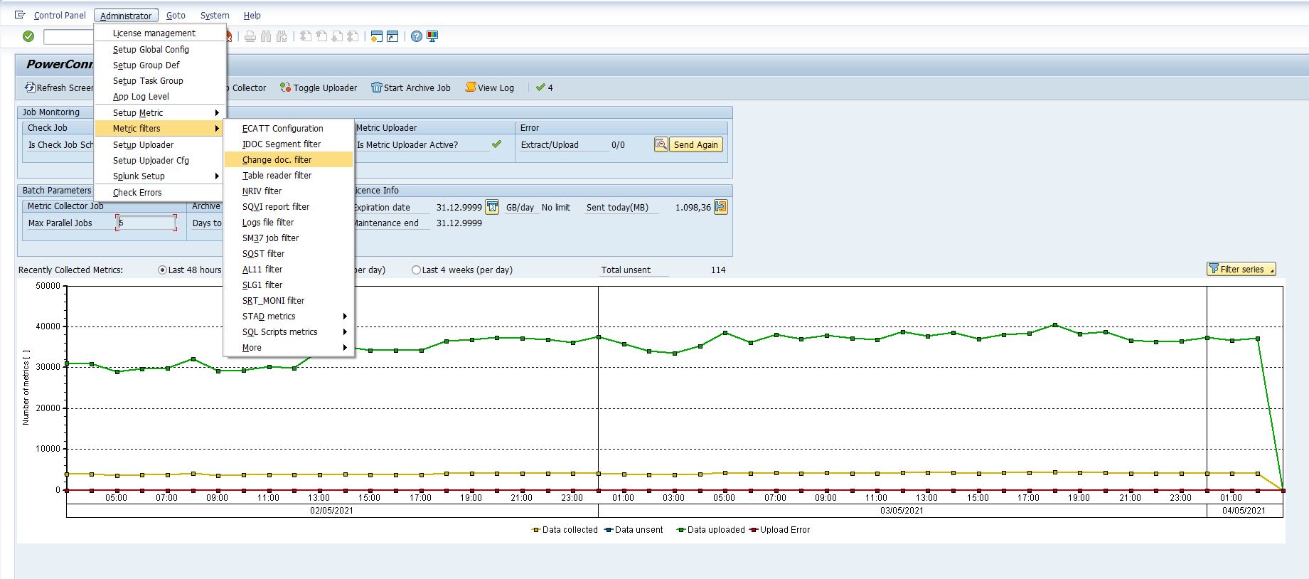 Log into the managed system, and execute the /n/bnwvs/main transaction. Then go to Administrator → Metric filters → Change doc. filter.