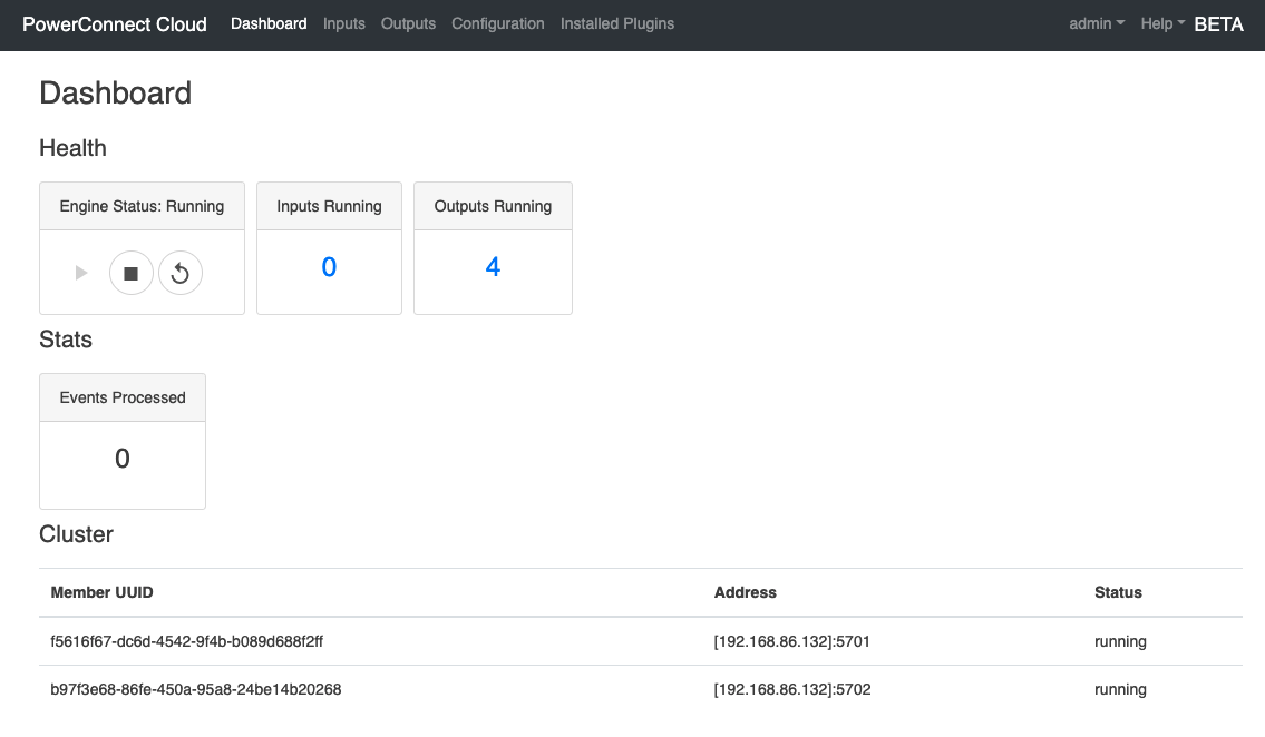 /opt/powerconnect/bin/powerconnect.sh restartLogin to the PowerConnect Cloud Agent web UI and you will see each member of the cluster in the Dashboard under the Cluster section e.g: