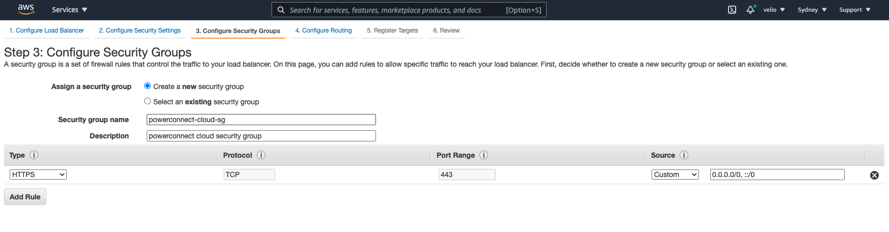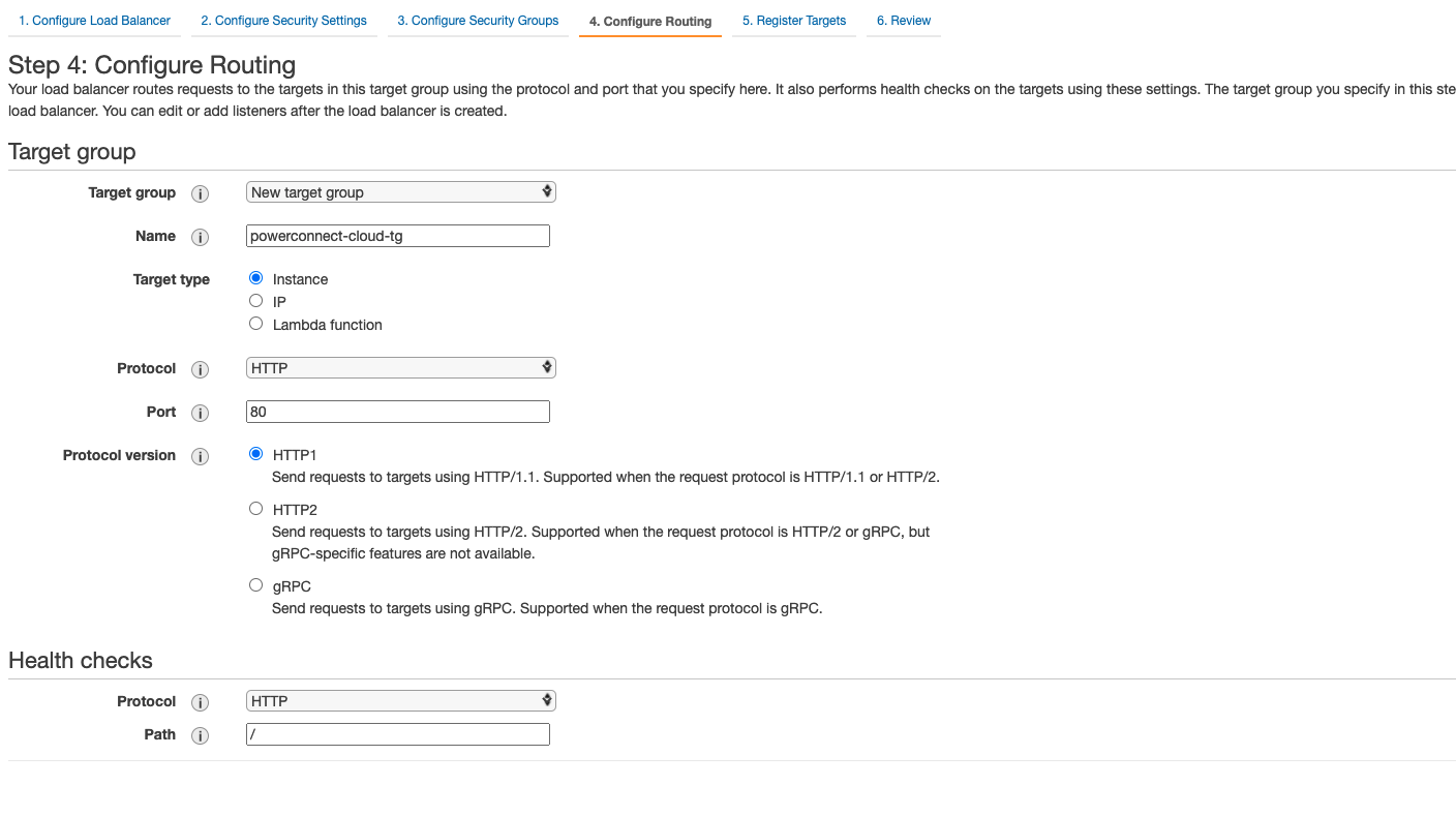 Add the PowerConnect Cloud instances to the registered targets using port 3000