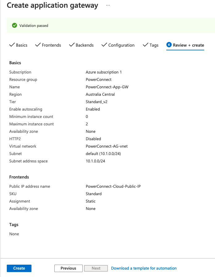 Click Create to create the Application Gateway. The resources will now be deployed.