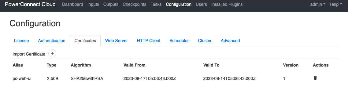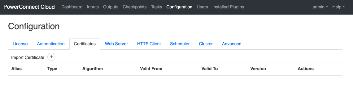 The PowerConnect Cloud web ui can be secured with SSL. As of PowerConnect Cloud version 2.1.0 an external web server is no longer required. Follow the steps below relevant to your environment.