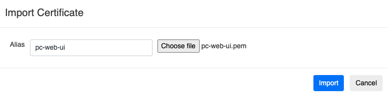 Give the certificate an alias and then click Choose file and select the pem file containing your private key and certificate