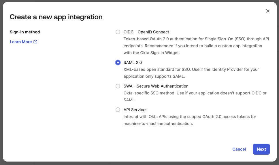 Follow the instructions from your authentication provider to get these values. An Okta example is provided below.