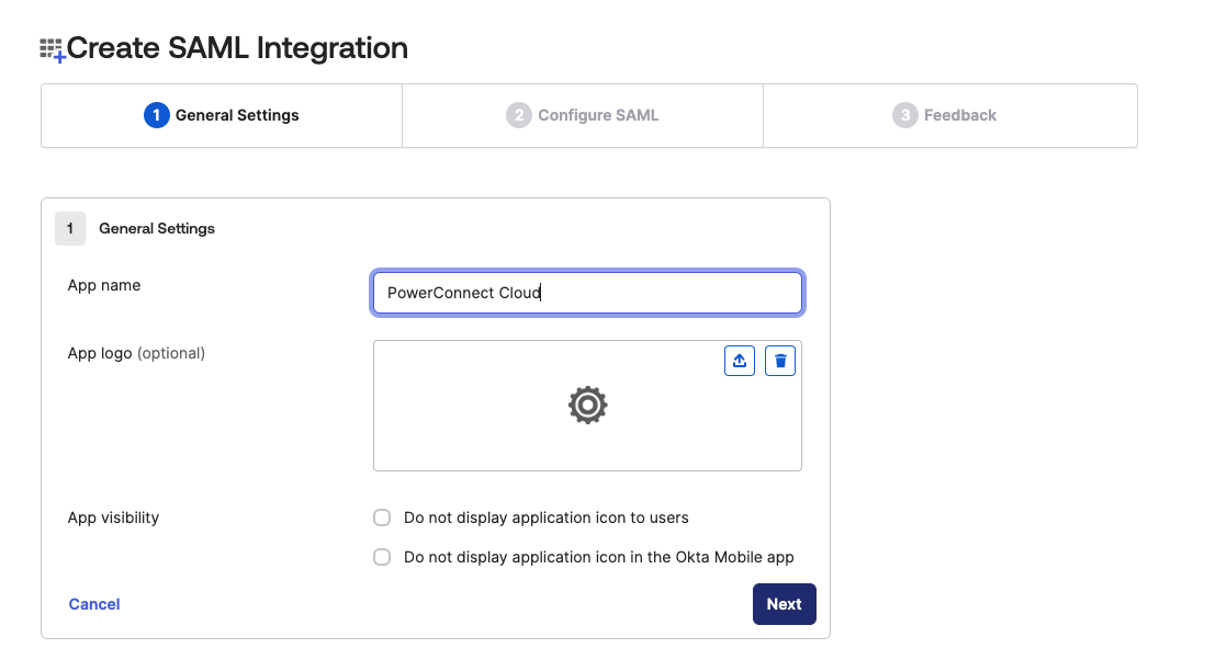 Give the application a name (e.g. PowerConnect Cloud) and click Next