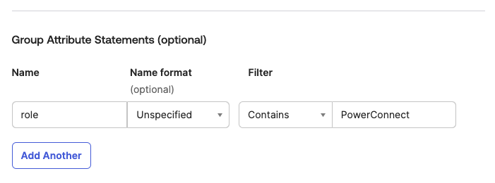 Create the Group Attribute mappings - this maps the Okta Groups to the PowerConnect Cloud Roles using the role attribute. Make sure the filter matches the group names you created previously