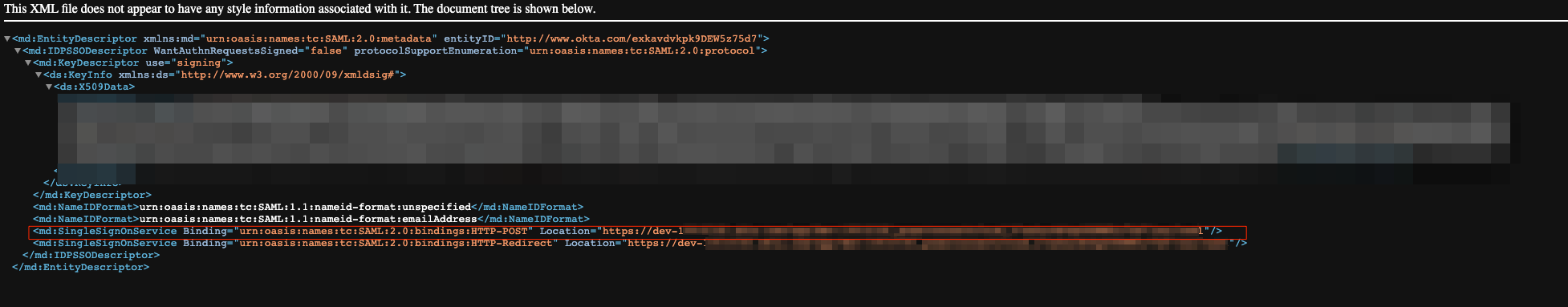 Copy the conents of the SingleSignOnService element - this is the IdP url setting in the PowerConnect Cloud UI