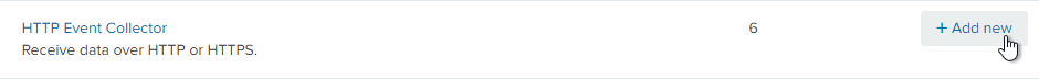 Create a new HTTP Event Collector by clicking on “+ Add new”.