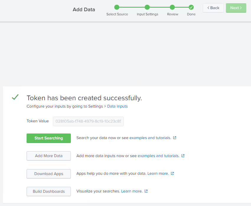 Note the value of the token that has been created. It will be needed when configuring the SAP add-on.