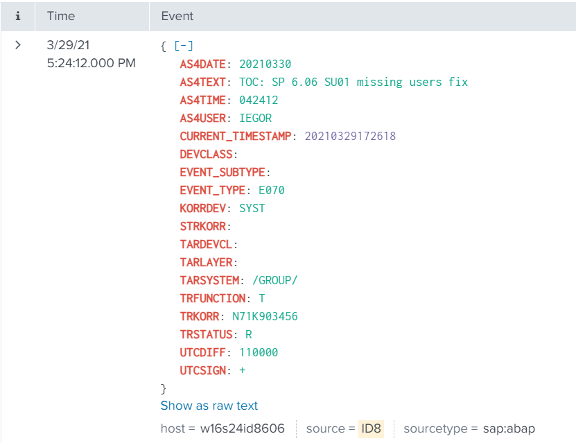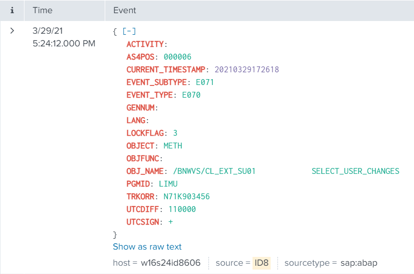 The event will look like this in Splunk: