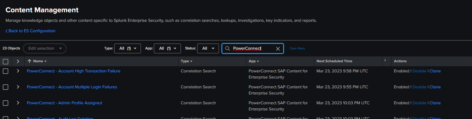 Under the App filter, select “PowerConnect SAP Content for Enterprise Security”