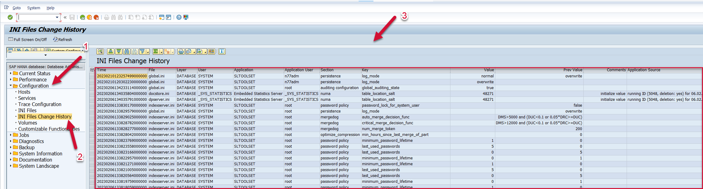 HDB_DBCC_INIHST - HANA Database INI Files Change History