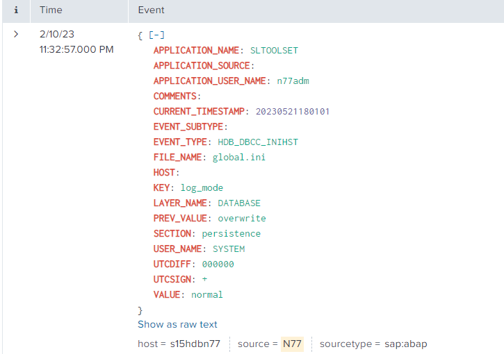 Execute the dbacockpit transaction in the system. Open the Configuration folder and double-click on “INI Files Change History”. The information displayed on the right side of the screen will match the data that is extracted and sent to Splunk.