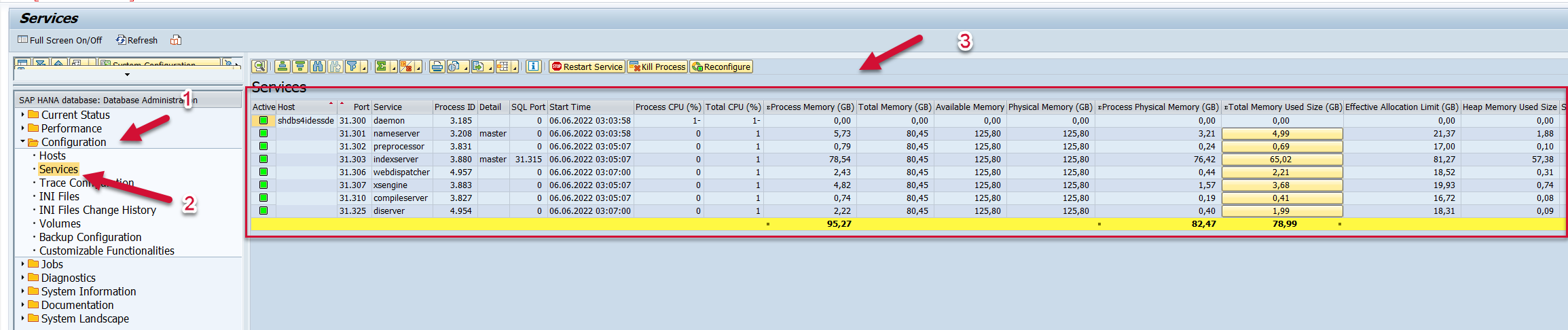 Go to the dbacockpit transaction in the SAP system. Then open the Configuration folder on the left side of the screen, and double-click the Services item. The information displayed on the right side of the screen will be extracted and sent to Splunk.