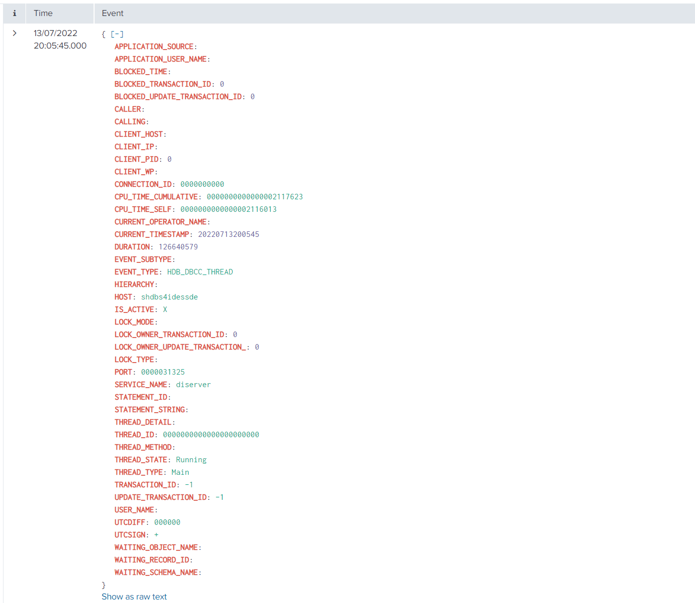 The HDB_DBCC_THREAD event is used in SAP to view active database threads. This dataset provides a snapshot of active threads running in the SAP HANA database.