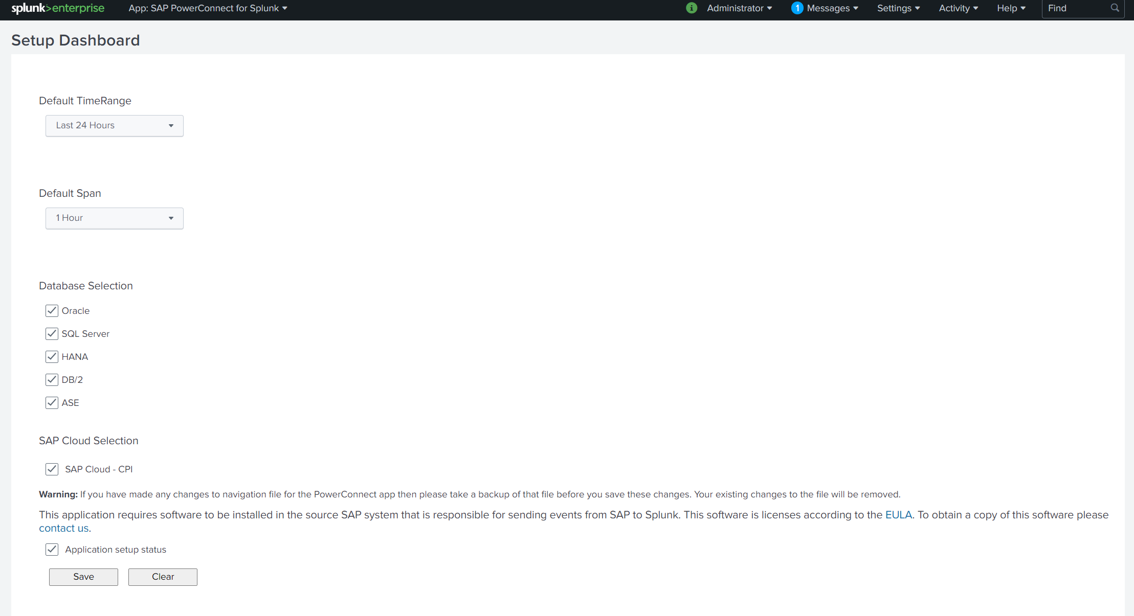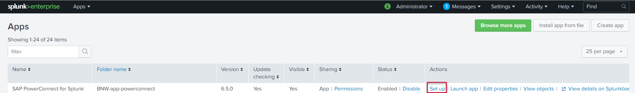 The setup page is used to configure the SAP PowerConnect App for Splunk and to configure the setup page, following steps have to be undertaken: