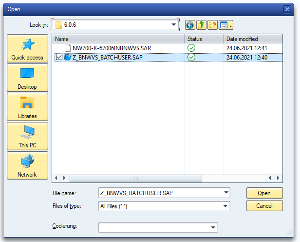 Select and upload updated role Z_BNWVS_BATCHUSER.