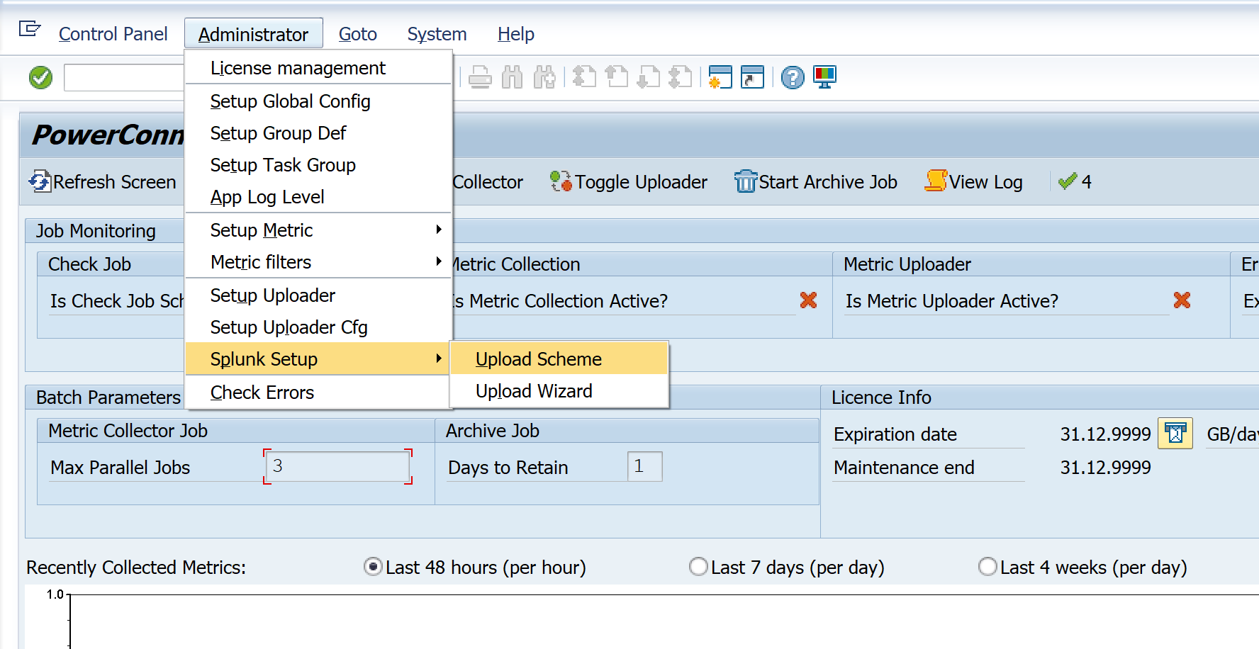 Log into the system and client where the PowerConnect agent is installed and execute the /n/bnwvs/main transaction.