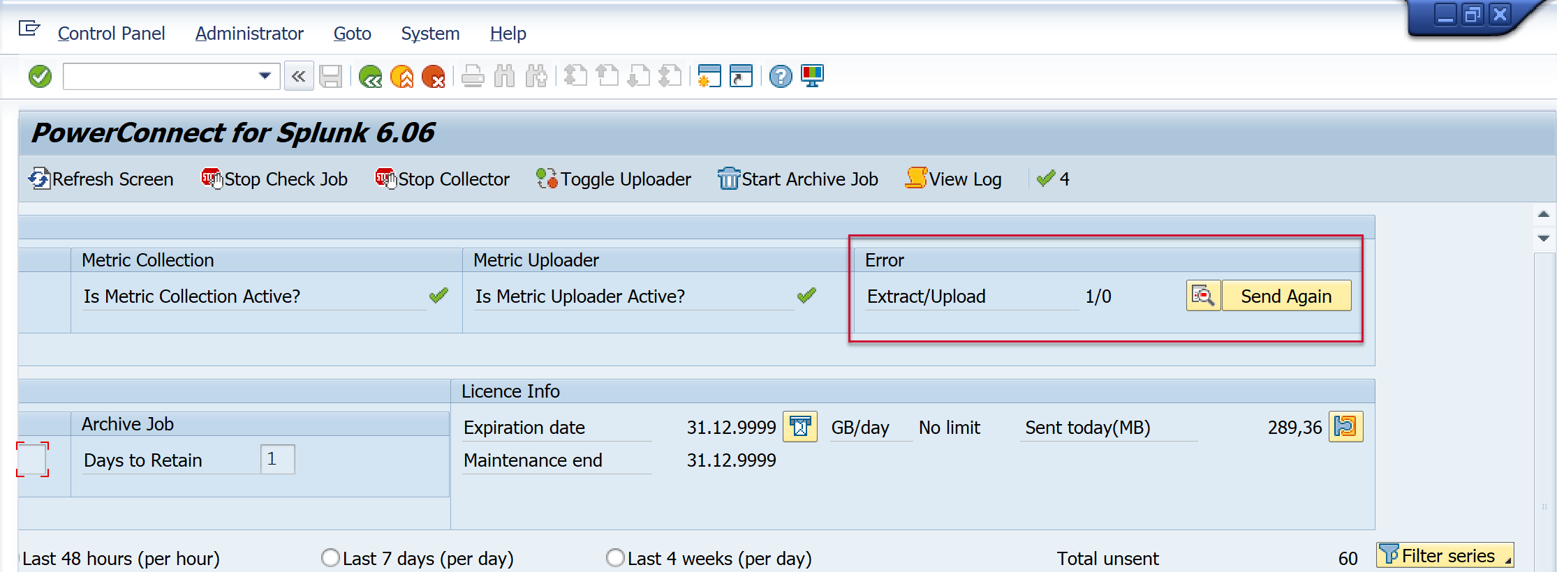 If for some reason there are a metric errors generated in the PowerConnect administrative console, and the root cause of the issue is fixed, follow these steps to send the metrics to Splunk:
