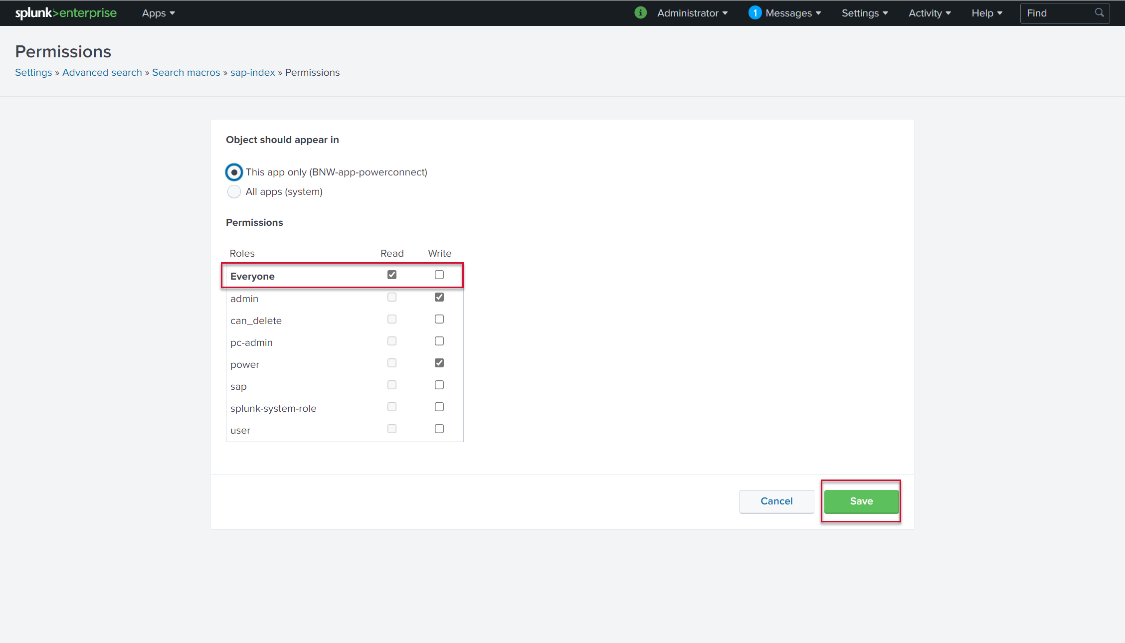 KB 115 (Splunk) - Permission Error With 'sap-index' Macro