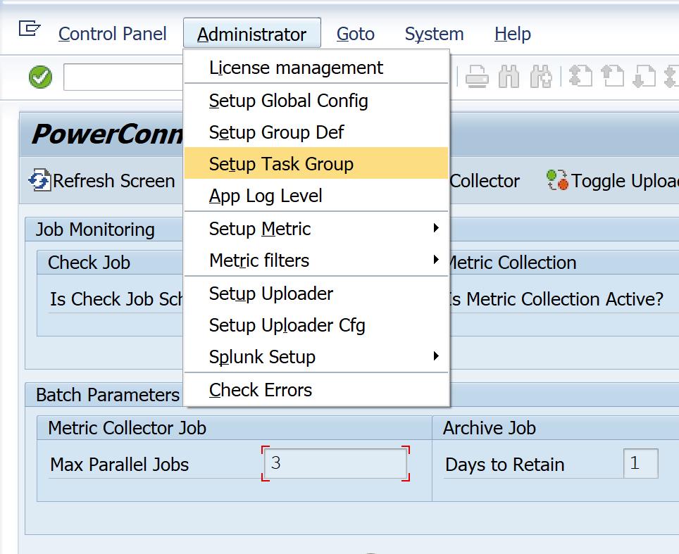 Return to the home page of the PowerConnect administrative console. Then go to Administrator → Setup Task Group.