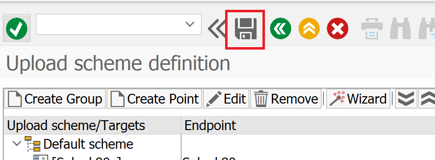 Log into the system where the PowerConnect application was installed, and execute the /n/bnwvs/main transaction. Then go to Administrator → Splunk Setup → Upload Scheme: