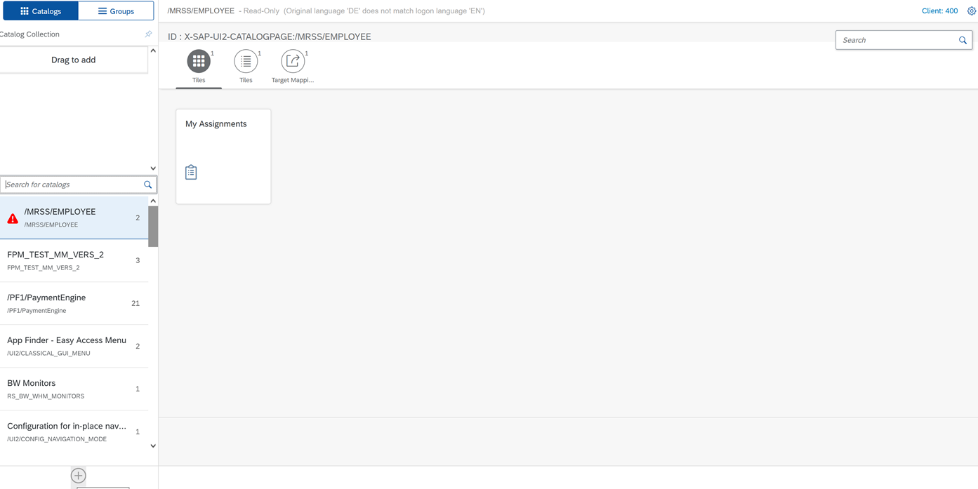Assign Fiori Launchpad Catalog to the Role: on Menu tab add SAP Fiori Launchpad->Launchpad Catalog