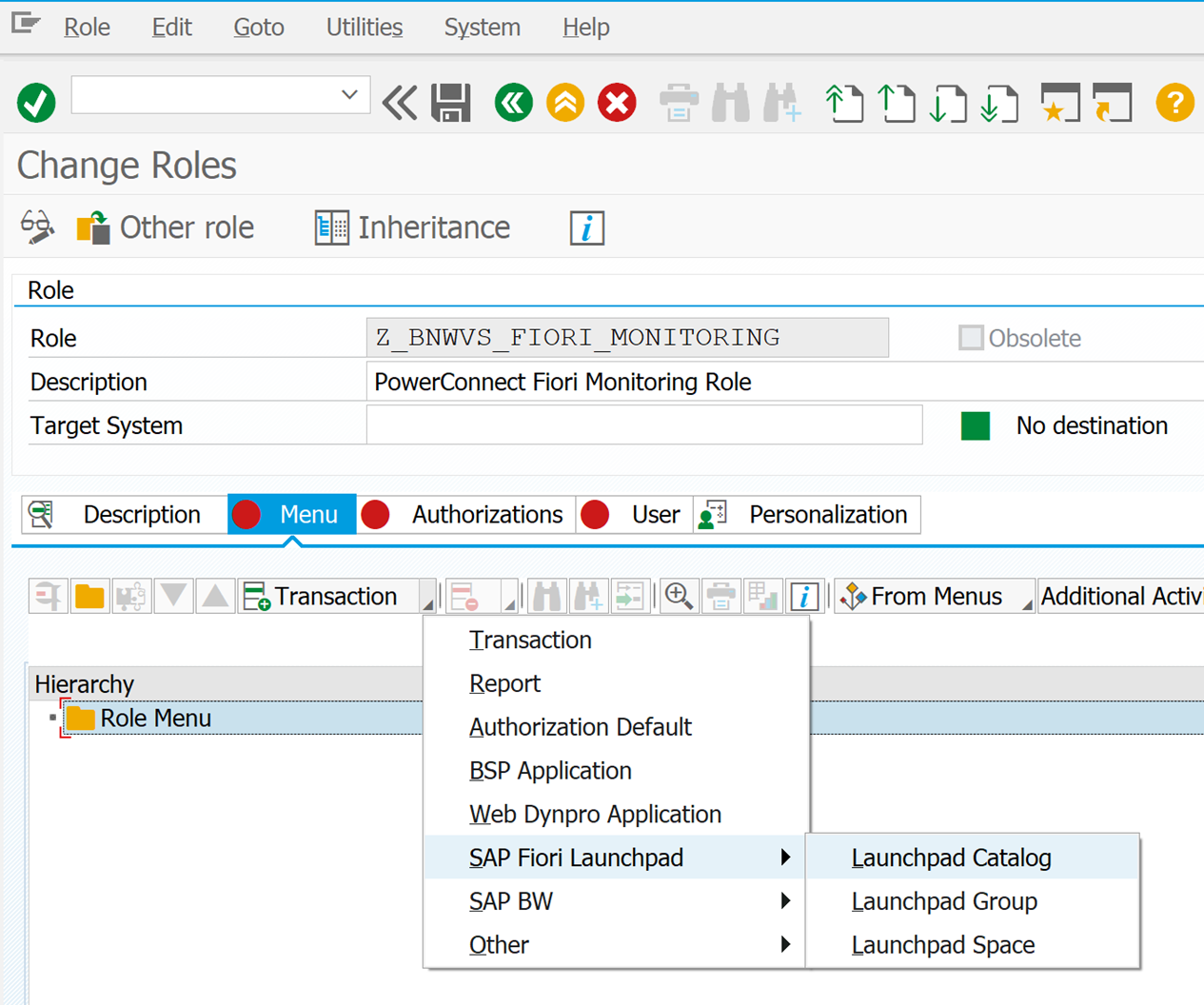 Create role: Z_BNWVS_FIORI_MONITORING (name can be changed)
