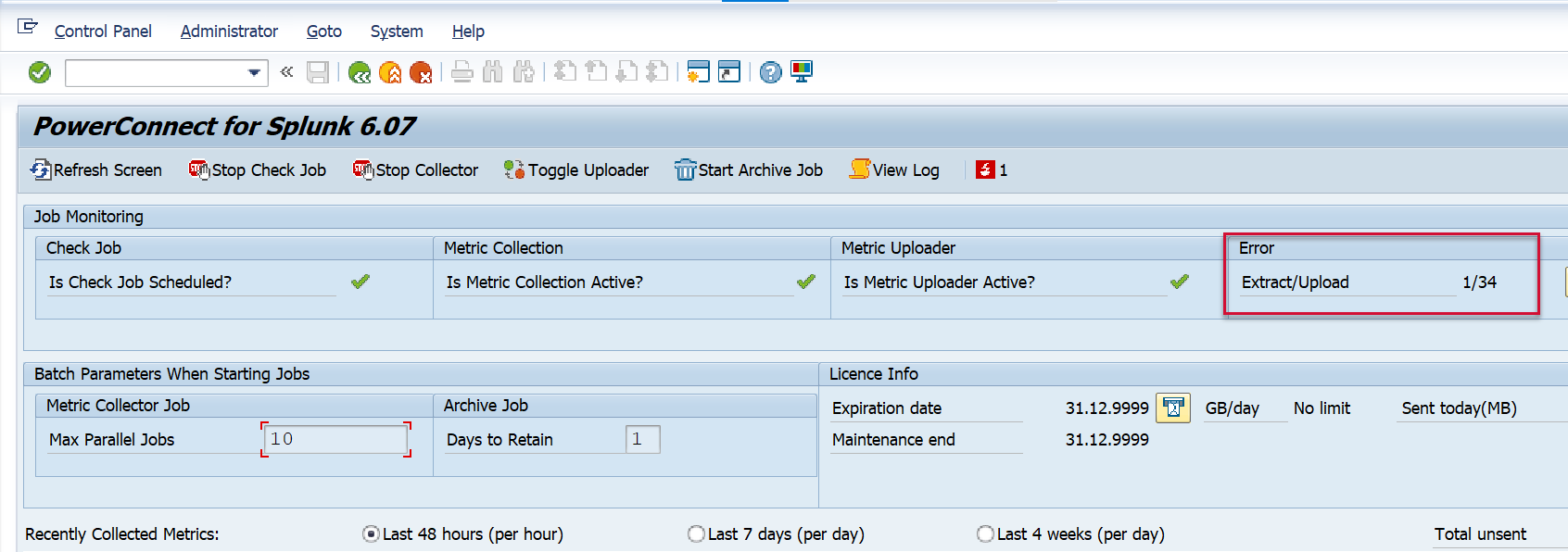 If there are metric errors visible within the PowerConnect administrative console they will be visible in the following location in the user interface.