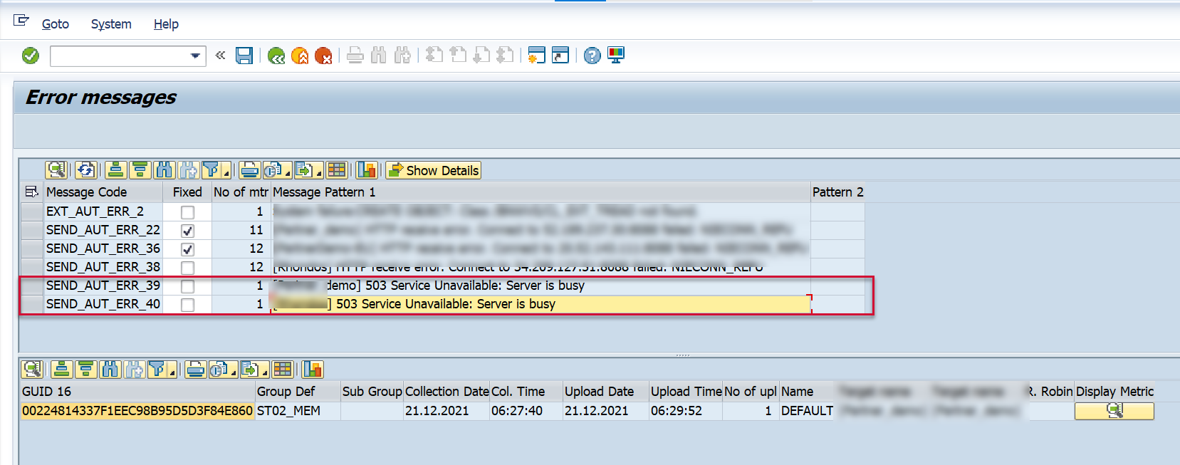 If you see the error “[<Target>] 503 Service Unavailable: Server is busy”, it means that the Splunk server responsible for receiving the SAP data being sent from the PowerConnect application was unable to receive the data. The data will persist in the SAP application and will be sent to the Splunk endpoint once the Splunk server is no longer too busy to receive the data.