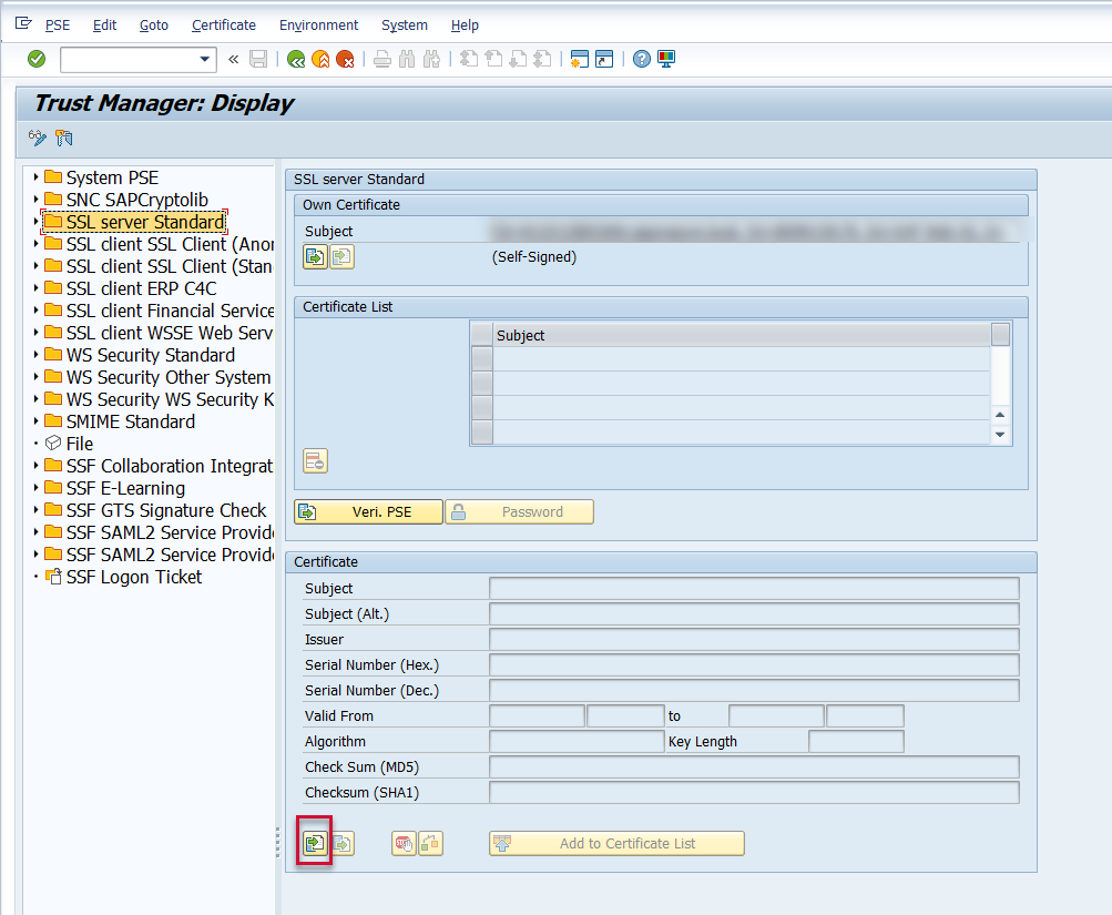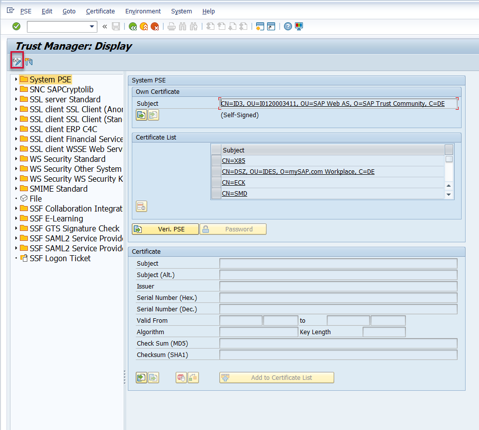 Then go to the STRUST transaction, and click the Display/Change button