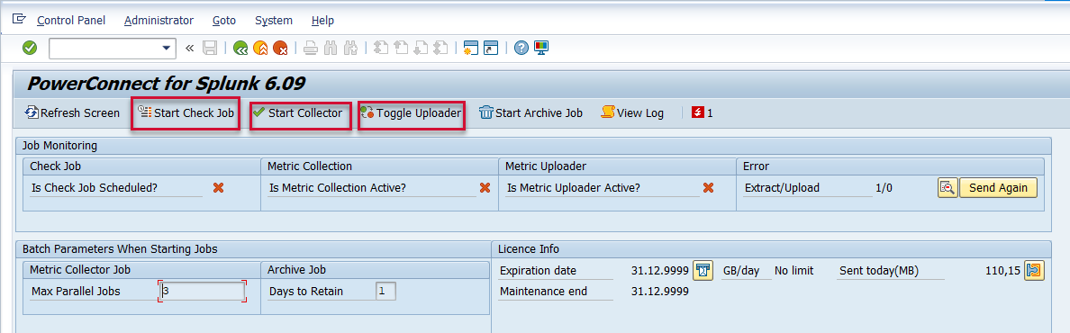 Return to the PowerConnect administrative console main page, and then restart the PowerConnect batch jobs using the buttons below