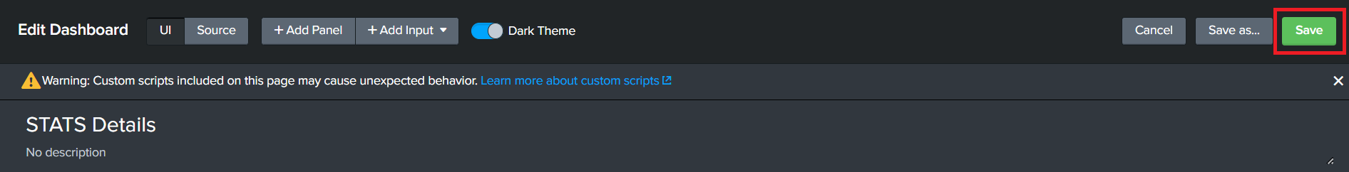 Finally, click on the Save button at the top right corner of the dashboard to save the new dashboard configuration.