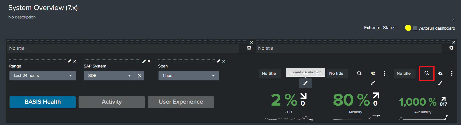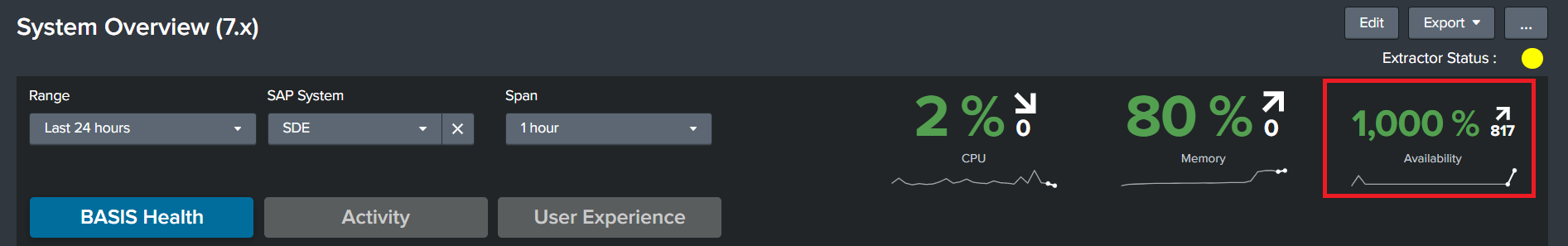 For the System Overview (7.x) dashboard, the Availability panel will be in the top right corner of the dashboard next to the input options.
