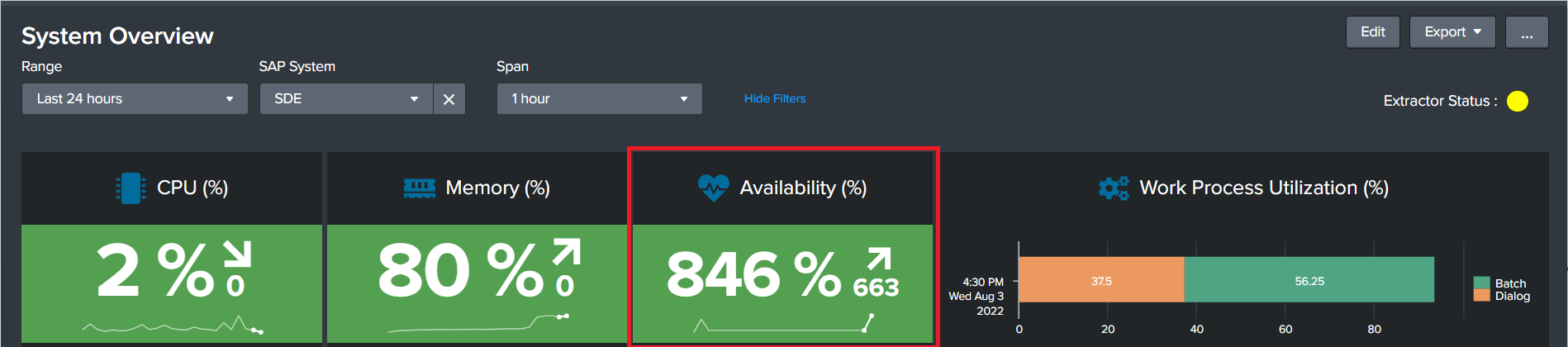 An issue was noted in the Availability panel from the Splunk app’s System Overview dashboards. They may show a value above 100%.
