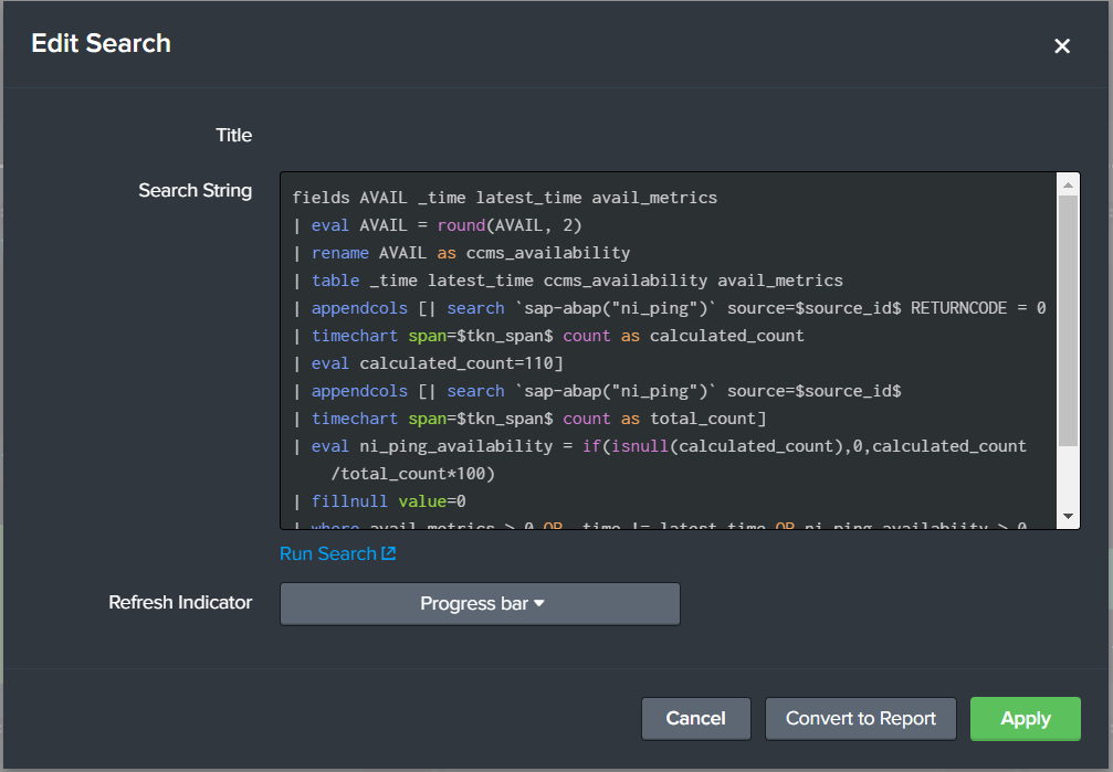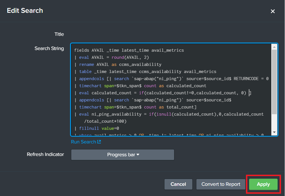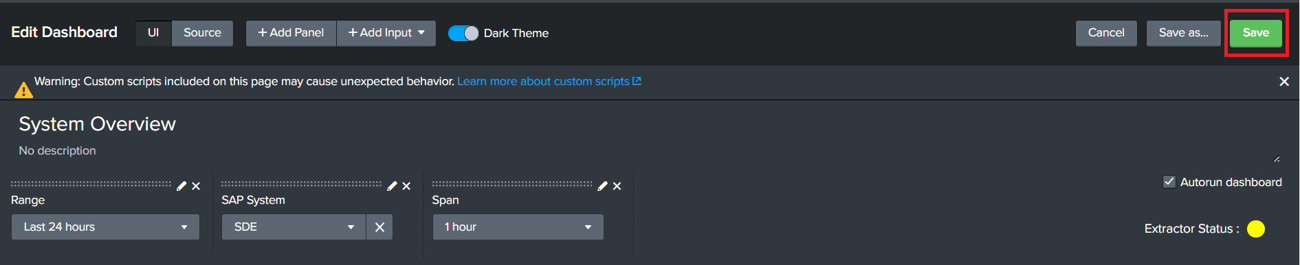 Click “Apply” for the “Edit Search” box, and then click the “Save” button at the top right to save the dashboard.
