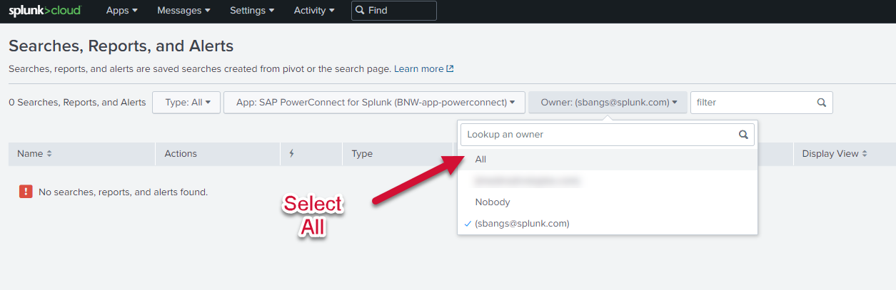 Select All from the Owner dropdown.