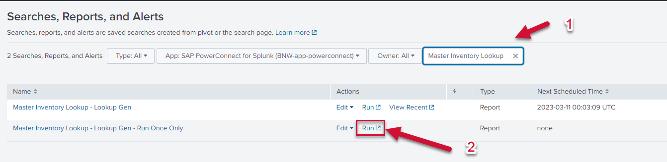 Search “Master Inventory Lookup” and find the “Master Inventory Lookup - Lookup Gen - Run Once Only” search. Run this search.