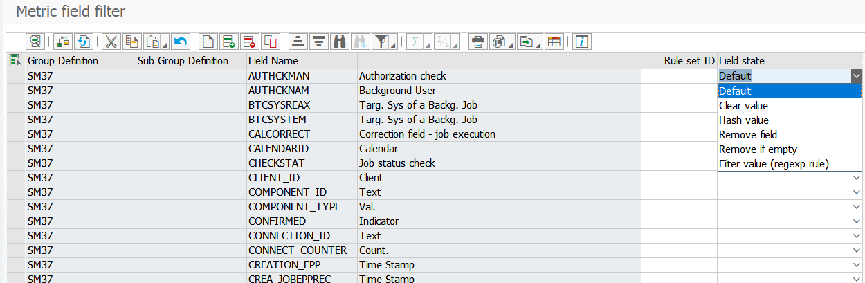 Filter value (regexp rule) - use Rule set ID (represent set of regular expressions) defined in column ‘Rule set ID'. It could be used to replace the field content or obfuscate the data;